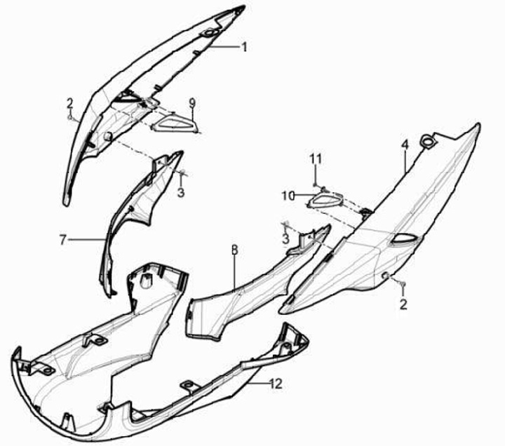 Panel sisi kanan tengah -PIAGGIO- TPH baru (mulai tahun 2010) (LBMC501, LBMM701, ZAPM501), Aprilia Sport City One (ZD4SB, ZD4SG)