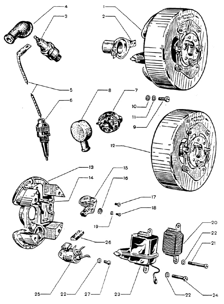 Koil pengapian internal -LAMBRETTA- Lambretta E (pengapian Marelli dengan penyesuaian waktu pengapian otomatis)