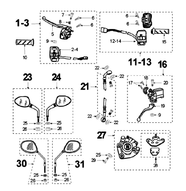 Unit sakelar kiri dengan tuas rem -PEUGEOT- Peugeot Speedfight 1 AC/LC, Vivacity (-2008)