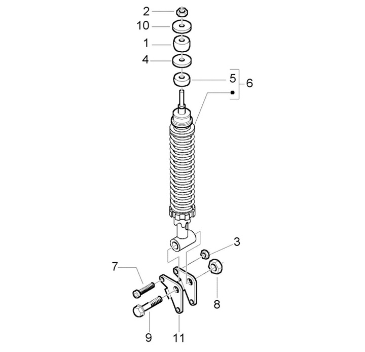 Peredam kejut belakang atas dari karet senyap (karet tipis bagian atas) -PIAGGIO 12x31x18mm- Vespa PK S-XL, Cosa, GT, GTS 125-300, GTL, GTV, LX, LT, LXV, Primavera, Sprint, ET2, ET4