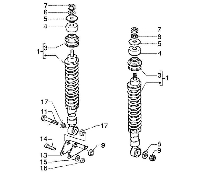 Bushing untuk peredam kejut belakang, kiri -PIAGGIO- Vespa GT 250 (ZAPM45102), Vespa GT L 125 (ZAPM31101), Vespa GTS 125 (ZAPM31300, ZAPMA3100, ZAPMA3200, ZAPMA3700), Vespa GTS 150 (ZAPMA3200, ZAPMA3100), Vespa GTS 250 (ZAPM45100, ZAPM45101), Vespa GTS 30