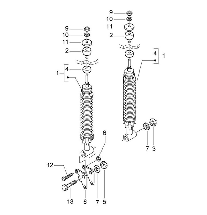 Peredam kejut belakang atas dari karet senyap (karet tipis bagian atas) -PIAGGIO 12x31x18mm- Vespa PK S-XL, Cosa, GT, GTS 125-300, GTL, GTV, LX, LT, LXV, Primavera, Sprint, ET2, ET4