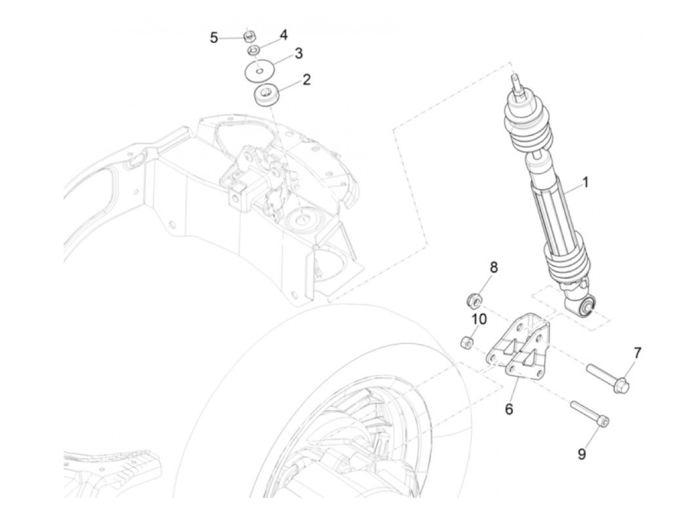 Peredam kejut belakang -PIAGGIO- Vespa Primavera 125 (ZAPMA1100, ZAPMA1101, ZAPMD1100), Vespa Primavera 150 (ZAPMA1200, ZAPMA1201, ZAPMD120), Vespa Sprint 125 (ZAPMA1300, ZAPMA1301, ZAPMD1101), Vespa Sprint 150 (ZAPMD1201), Vespa Elettrica Elektro (ZAPCB0