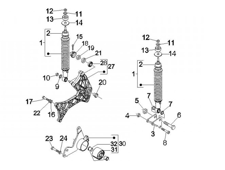Lengan ayun, belakang, kanan -PIAGGIO- Vespa GT 250 (ZAPM45102), Vespa GT L 125 (ZAPM31100, ZAPM31101), Vespa GT L 200 (ZAPM31200), Vespa GTS 125 (ZAPM31300), Vespa GTS 250 (ZAPM45100, ZAPM45101), Vespa GTS 300 (ZAPM45200, ZAPM45202, ZAPMA3300), Vespa GTS