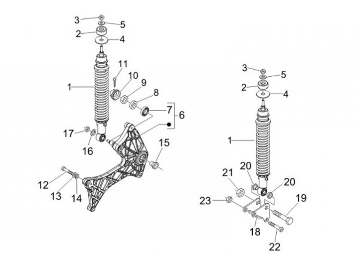 Lengan ayun, belakang, kanan -PIAGGIO- Vespa GT 250 (ZAPM45102), Vespa GT L 125 (ZAPM31100, ZAPM31101), Vespa GT L 200 (ZAPM31200), Vespa GTS 125 (ZAPM31300), Vespa GTS 250 (ZAPM45100, ZAPM45101), Vespa GTS 300 (ZAPM45200, ZAPM45202, ZAPMA3300), Vespa GTS