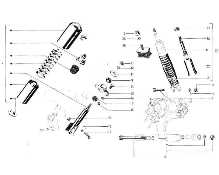 Garpu dudukan peredam kejut/peredam kejut bagian atas depan -PIAGGIO- Vespa PX80, PX125, PX150, PX200, T5 125cc