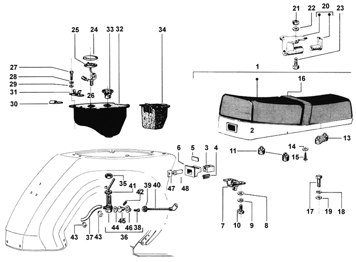 Rangka kunci bangku kursi -PIAGGIO- Vespa PK, PK S, PK S Lusso, PK XL