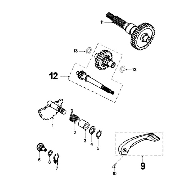 Pinion kickstarter -KUALITAS OEM- Peugeot 50 ccm (model dengan pompa oli Mikuni) - 12,5 mm - 7 gigi