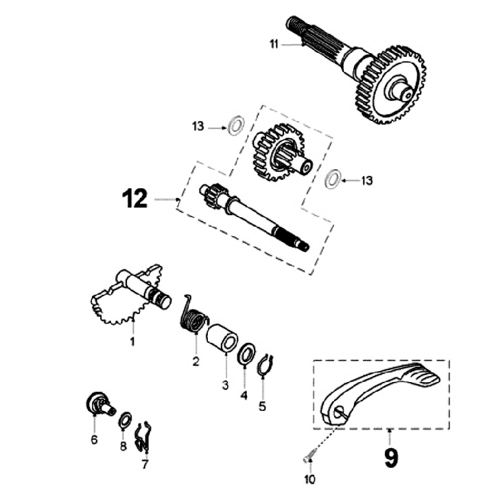 Pinion kickstarter -KUALITAS OEM- Peugeot 50 ccm (model dengan pompa oli Mikuni) - 12,5 mm - 7 gigi