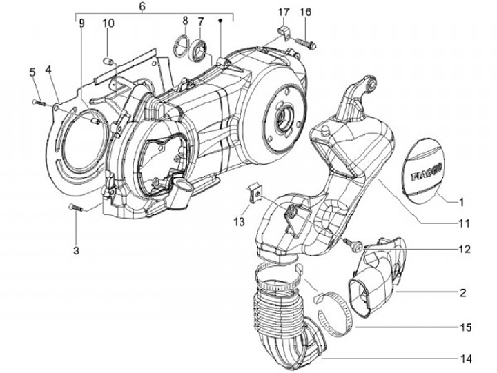 Pelat penahan untuk selang nafas -PIAGGIO- Vespa GT 250 (ZAPM45102), Vespa GT L 125 (ZAPM31101), Vespa GTS 125 (ZAPM31300, ZAPMA3200, ZAPMA3700), Vespa GTS 250 (ZAPM45100, ZAPM45101), Vespa GTS 300 (ZAPM45200, ZAPM45202, ZAPMA3300), Vespa GTS HPE 300 (Z