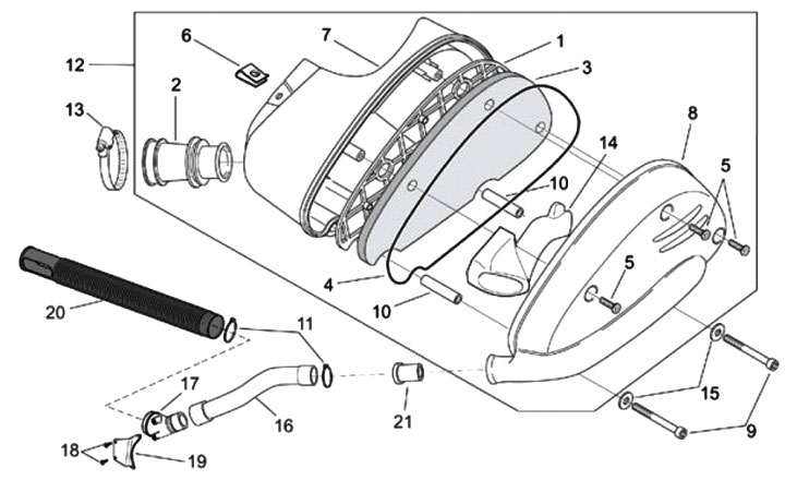 Kotak filter udara -PIAGGIO- Aprilia SR50 (mesin Suzuki, ZD4RLA), SR50 (mesin Piaggio, ZD4TEA, ZD4VFD00), SR50 DiTech (mesin Suzuki, ZD4RLB, ZD4RLE), SR50 DiTech (mesin Piaggio, ZD4RLD, ZD4TE0)