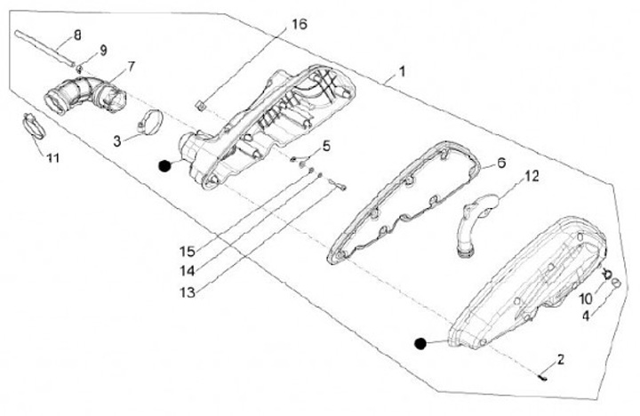 Kolektor - Tutup karet -PIAGGIO- Kotak saringan udara Piaggio Leader 125-200 LC, Quasar 250-300, 400-500 ccm Master