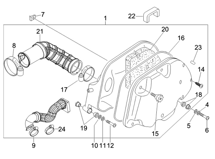 Selang intake untuk kotak saringan udara -PIAGGIO- Vespa LX 50-150, LXV 125, S 50-150, Primavera 50, Sprint 50, Piaggio Fly 50-150, Liberty 125-150, TPH 125, Aprilia Mojito 125, Sport City One 125, SR Motard 50-125