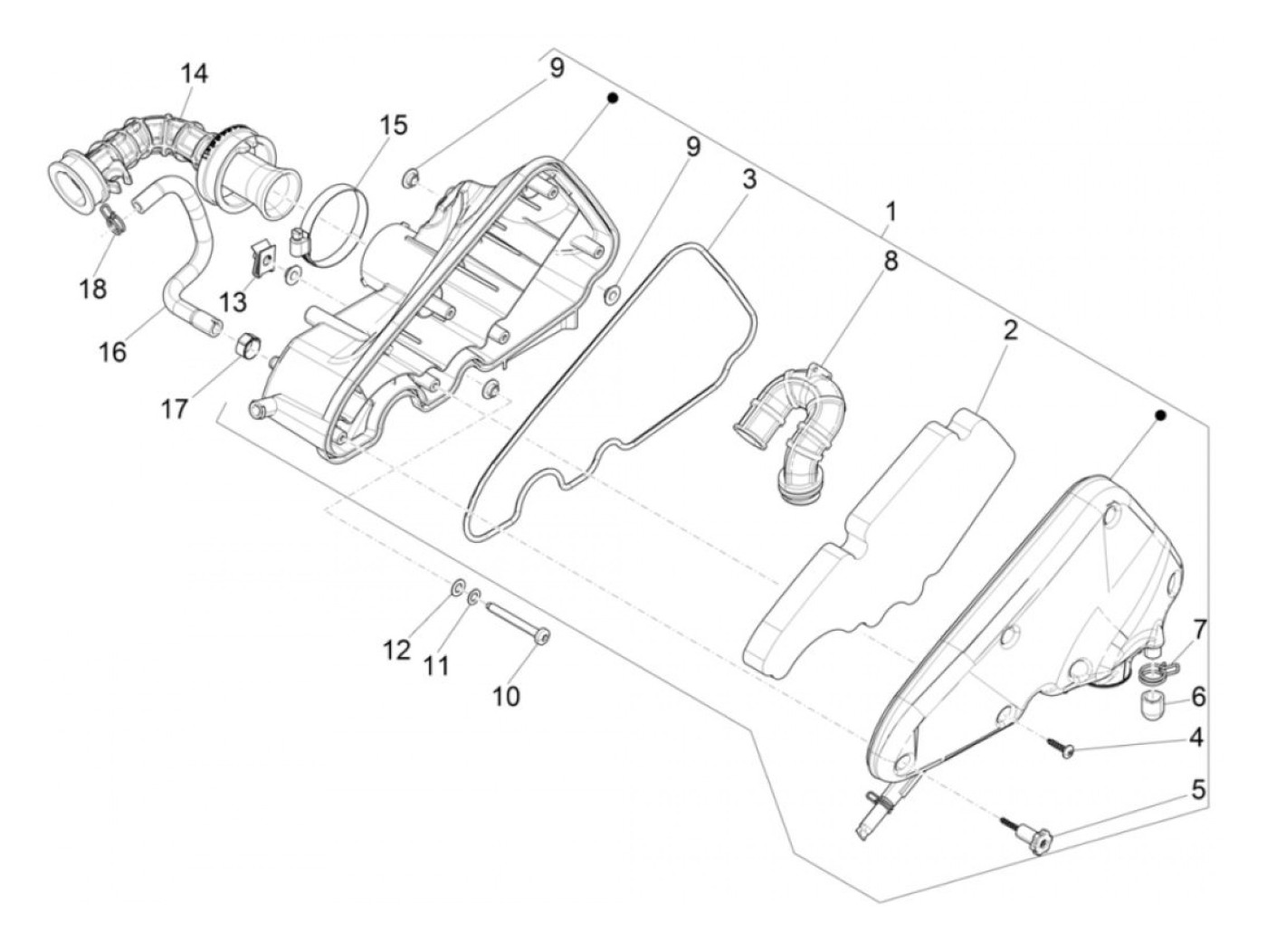 Kotak saringan udara cpl. -PIAGGIO- Vespa Primavera 50 2018-2023, Sprint 50 2018-2023