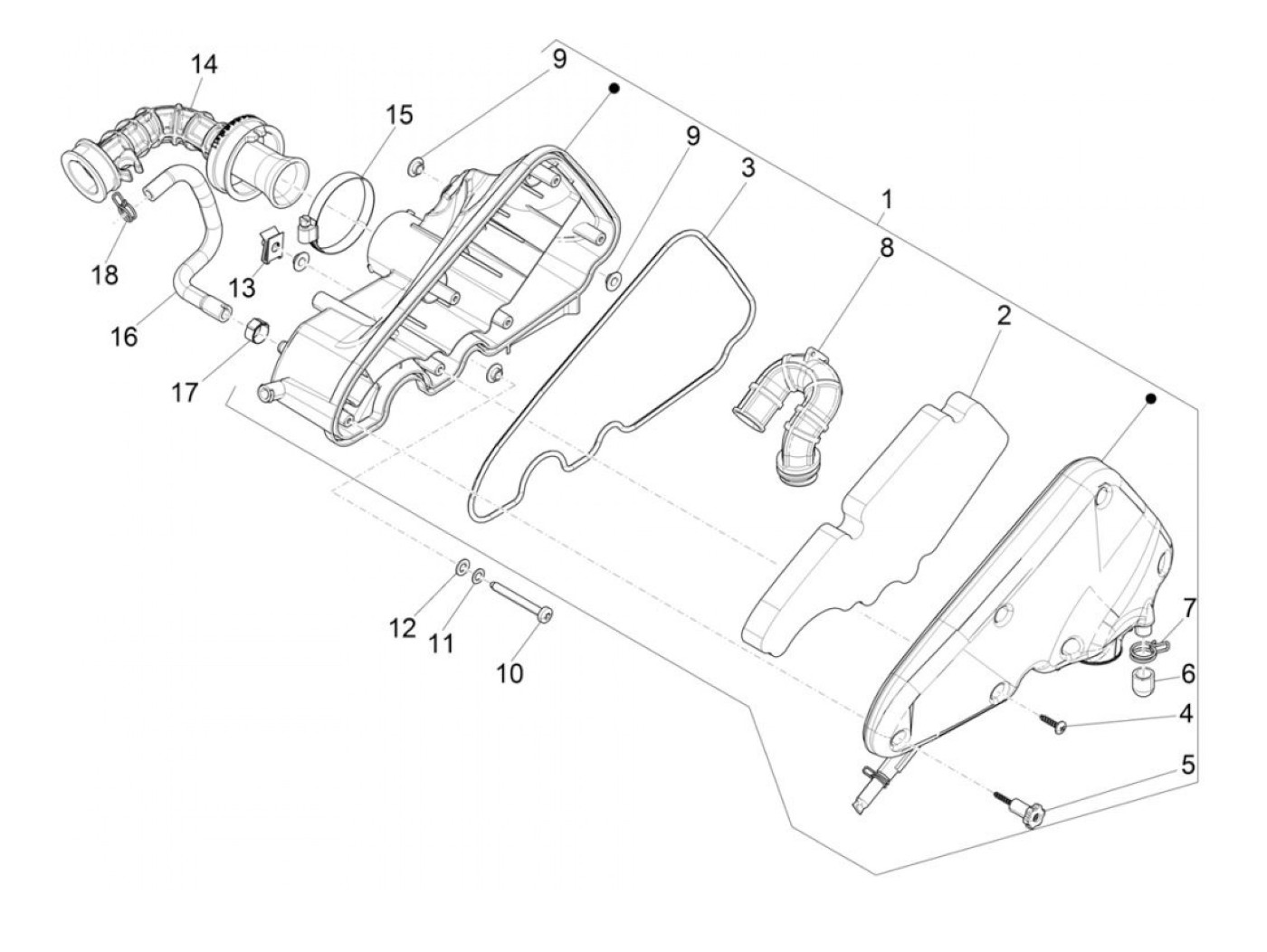Kotak saringan udara cpl. -PIAGGIO- Vespa Primavera 50 2018-2023, Sprint 50 2018-2023