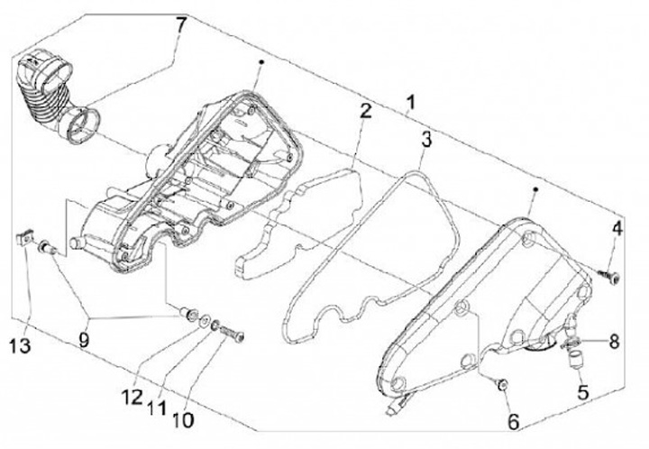 Kotak saringan udara cpl. -PIAGGIO- Vespa LX 50-125, LXV 125, S 50-125, Piaggio Fly 100-150, X8 150, Liberty 125-150, Aprilia Mojito Custom 125, Sport City One 125, Derbi Boulevard 100