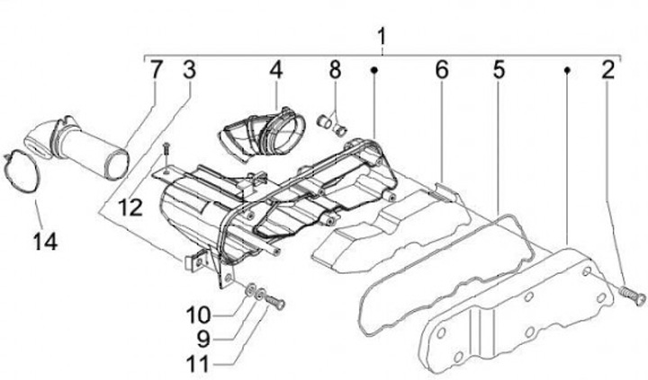 Saluran masuk untuk kotak filter udara -PIAGGIO- Vespa LX 50 (ZAPC38101, ZAPC38104), Vespa LXV 50 (ZAPC38102), Vespa Primavera 50 (ZAPC53200), Vespa S 50 (ZAPC38103), Vespa Sprint 50 (ZAPC53201), Gilera Stalker 50 (ZAPC40100, ZAPC40101, ZAPC40102), Gilera
