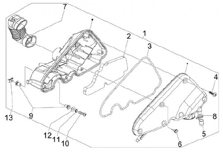 Selang intake untuk kotak saringan udara -PIAGGIO- Vespa LX 50-150, LXV 125, S 50-150, Primavera 50, Sprint 50, Piaggio Fly 50-150, Liberty 125-150, TPH 125, Aprilia Mojito 125, Sport City One 125, SR Motard 50-125