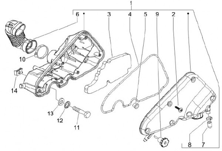 Kotak saringan udara cpl. -PIAGGIO- Vespa LX 50 4T, Sprint 50 4T, Primavera 50 4T, S 50 4T, Piaggio Fly 50 4T, Aprilia Sport City One 50 4T