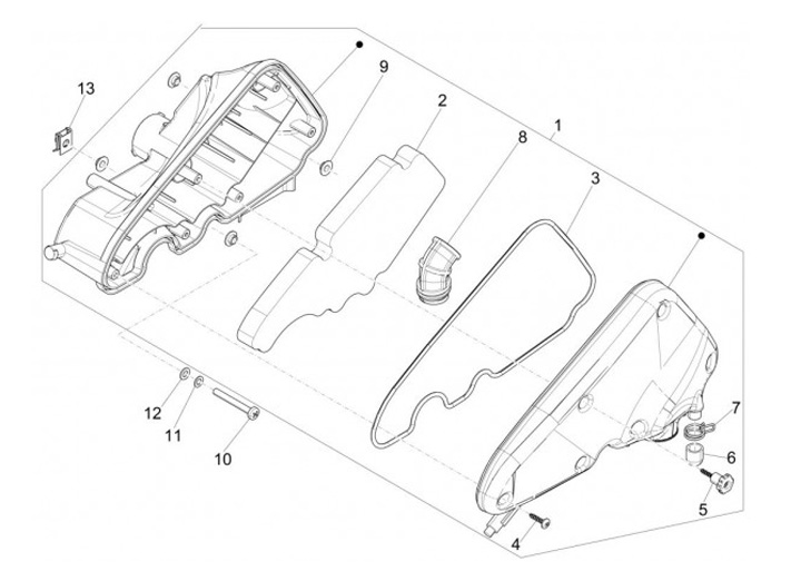 Kotak saringan udara cpl. -PIAGGIO- Vespa Primavera 50 4T 2013-, Sprint 50 4T 2013-