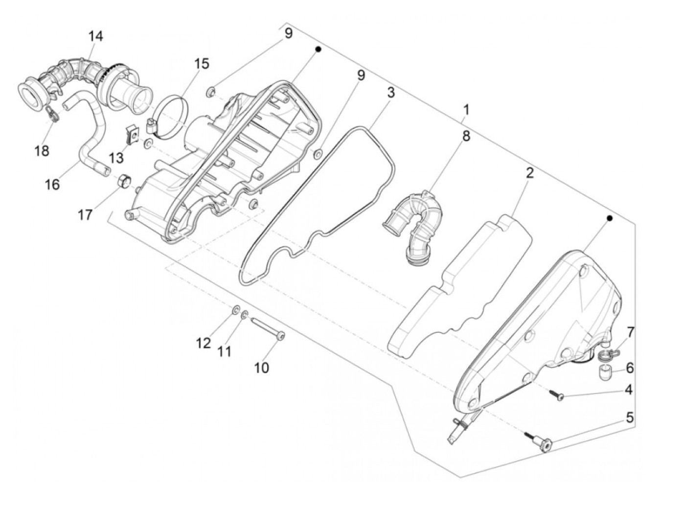 Kotak saringan udara cpl. -PIAGGIO- Vespa Primavera 50 2018-2023, Sprint 50 2018-2023
