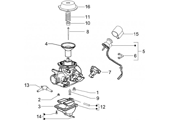 Katup throttle dengan diafragma -PIAGGIO- Vespa GTS 125, GTL 125-200, GTV 125, Piaggio Beverly 125-250, Carnaby 125, Aprilia Atlantic 125-250, Sport City 125-200