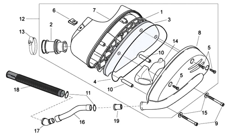 Kotak filter udara -PIAGGIO- Aprilia SR50 (mesin Suzuki, ZD4RLA), SR50 (mesin Piaggio, ZD4TEA, ZD4VFD00), SR50 DiTech (mesin Suzuki, ZD4RLB, ZD4RLE), SR50 DiTech (mesin Piaggio, ZD4RLD, ZD4TE0)