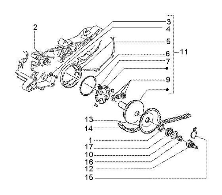 Sepatu luncur Vario -PIAGGIO- Piaggio 125-180 ccm 2-tak - Gilera Runner FX/FXR 125-180, Italjet Dragster 125-180, Piaggio SKR125, SKR150, TPH125, Skipper125, Skipper150, Hexagon LX/LXT 125-180
