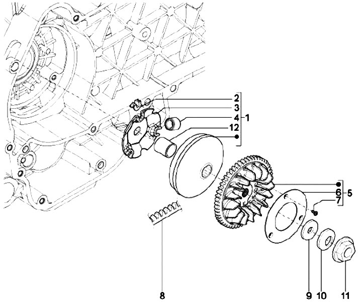 Variomatic -PIAGGIO- Vespa LX 125 (ZAPM44100, ZAPM44300, ZAPM68100), Vespa LXV 125 (ZAPM68102, ZAPM44301), Vespa S 125 (ZAPM44302, ZAPM68101), Vespa ET4 125 (ZAPM19000), Aprilia Mojito 125 (ZD4RY, ZD4SZA00), Aprilia Scarabeo 125 (ZD4RB000, ZD4RBB00), Apri
