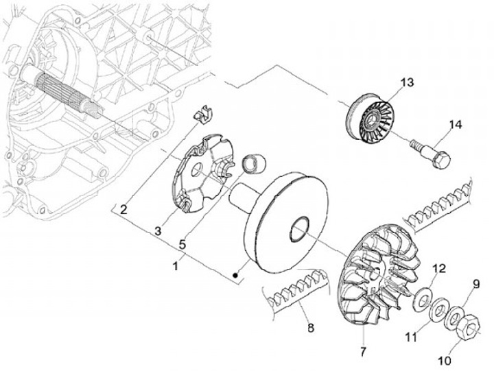 Variator -PIAGGIO- Vespa GT 250 (ZAPM45102), Vespa GTS 250 (ZAPM45100, ZAPM45101), Vespa GTV 250 (ZAPM45102), Aprilia Atlantic 250 (ZD4SPB), Aprilia Scarabeo 250 (ZD4TDB, ZD4TDC), Aprilia Sport City 250 (ZD4VBB00), Aprilia Sport City Cube 250 (ZD4VBH),