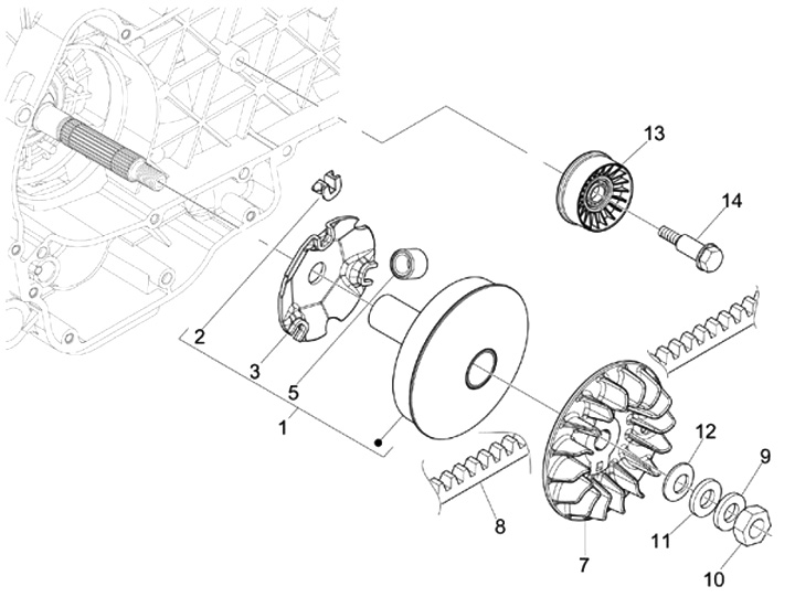 Variator -PIAGGIO- Vespa GT 250 (ZAPM45102), Vespa GTS 250 (ZAPM45100, ZAPM45101), Vespa GTV 250 (ZAPM45102), Aprilia Atlantic 250 (ZD4SPB), Aprilia Scarabeo 250 (ZD4TDB, ZD4TDC), Aprilia Sport City 250 (ZD4VBB00), Aprilia Sport City Cube 250 (ZD4VBH),