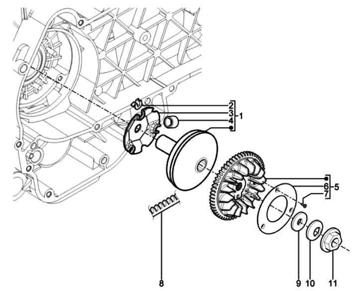 Variomatic -PIAGGIO- Vespa LX 125 (ZAPM44100, ZAPM44300, ZAPM68100), Vespa LXV 125 (ZAPM68102, ZAPM44301), Vespa S 125 (ZAPM44302, ZAPM68101), Vespa ET4 125 (ZAPM19000), Aprilia Mojito 125 (ZD4RY, ZD4SZA00), Aprilia Scarabeo 125 (ZD4RB000, ZD4RBB00), Apri