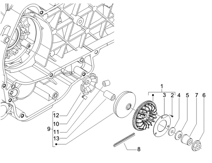Variator -PIAGGIO- Vespa GT L 125 (ZAPM31100, ZAPM31101), Vespa GTS 125 (ZAPM31300), Vespa GTS Super 125 (ZAPM45300, ZAPM45301), Vespa GTS Super Sport 125 (ZAPM45300), Vespa GTV 125 (ZAPM31301), Aprilia Atlantic 125 (ZD4SPD00, ZD4SP0, ZD4SPD), Aprilia S