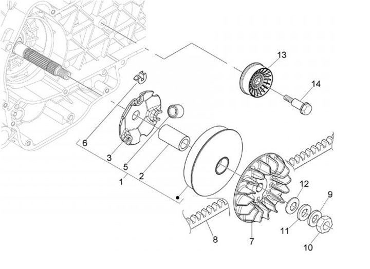 Variator -PIAGGIO- Vespa GT 250 (ZAPM45102), Vespa GTS 250 (ZAPM45100, ZAPM45101), Vespa GTV 250 (ZAPM45102), Aprilia Atlantic 250 (ZD4SPB), Aprilia Scarabeo 250 (ZD4TDB, ZD4TDC), Aprilia Sport City 250 (ZD4VBB00), Aprilia Sport City Cube 250 (ZD4VBH),