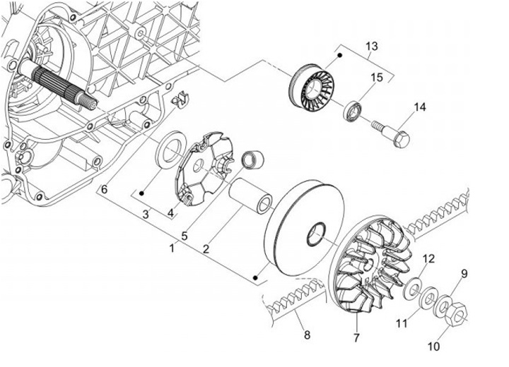 Variator -PIAGGIO- Vespa GT 250 (ZAPM45102), Vespa GTS 250 (ZAPM45100, ZAPM45101), Vespa GTV 250 (ZAPM45102), Aprilia Atlantic 250 (ZD4SPB), Aprilia Scarabeo 250 (ZD4TDB, ZD4TDC), Aprilia Sport City 250 (ZD4VBB00), Aprilia Sport City Cube 250 (ZD4VBH),