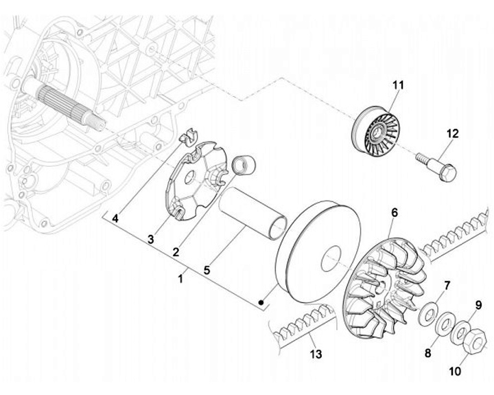 Variator -PIAGGIO- Vespa GTS 300 (ZAPM45200, ZAPM45202, ZAPMA3300), Vespa GTS Super 300 (ZAPM45200, ZAPM45202, ZAPMA3300), Vespa GTS Super Sport 300 (ZAPM45200), Vespa GTV 300 (ZAPM45201, ZAPMA3302), Aprilia Atlantic 250 (ZD4SPE), Aprilia Atlantic 300 (