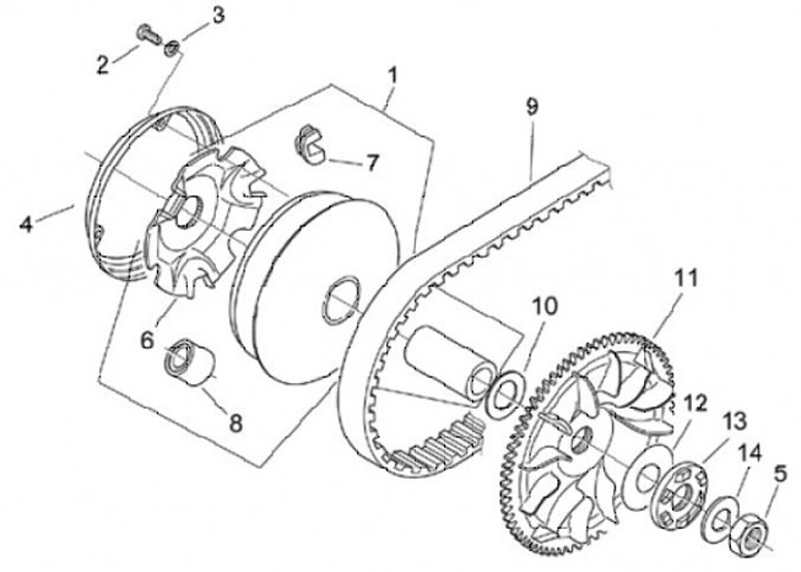 Variator -RMS- Piaggio 125 ccm 4-tak (generasi pertama) - Vespa ET4 125 (ZAPM0400000001001), Aprilia Mojito 125 (ZD4PM), Piaggio Hexagon 125 (ZAPM15000), Piaggio Liberty 125 (ZAPM11000), Piaggio Sfera 125 (ZAPM01000)