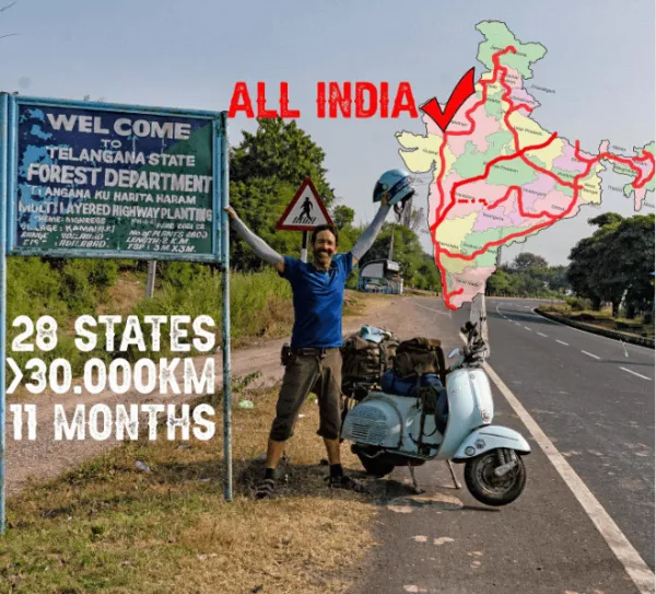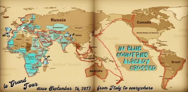 "210.000 km y 100 países recorridos (hasta ahora) con la VESPA desde septiembre de 2017 NON STOP". Así saluda Ilario Lavarra en sus redes sociales a todos los fanáticos de la Vespa que sueñan con viajes de larga distancia. Pero los viajes de larga distancia adquieren aquí un significado totalmente nuevo, explicado brevemente: ¡¡¡El mundo entero!!!