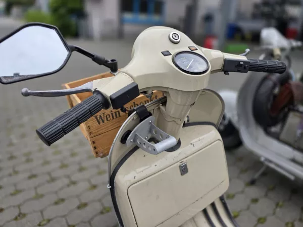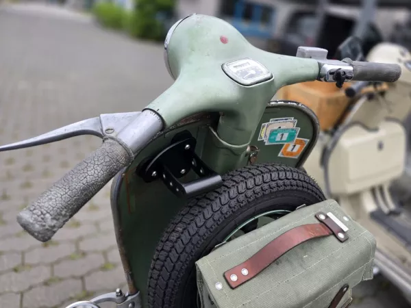 El innovador soporte para teléfono móvil Vespa está fabricado en Alemania por Wulf & Berger y se ha desarrollado especialmente para las pletinas de estaño de todas las Vespa clásicas.