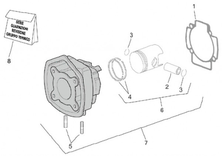 Set guarnizioni cilindro -RMS 50 ccm- Piaggio 50 ccm LC (testa a 4 angoli)