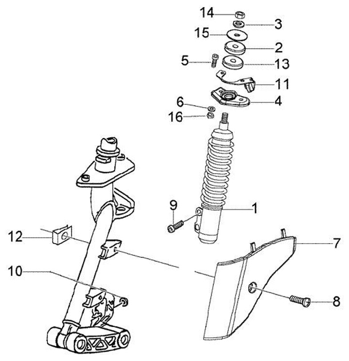 Supporto ammortizzatore forcella/ammortizzatore superiore -PIAGGIO- Vespa GT 250 (ZAPM45102), Vespa GT L 125 (ZAPM31100, ZAPM31101), Vespa GT L 200 (ZAPM31200), Vespa GTS 125 (ZAPM31300), Vespa GTS 250 (ZAPM45100, ZAPM45101), Vespa GTS 300 (ZAPM45200), Ve