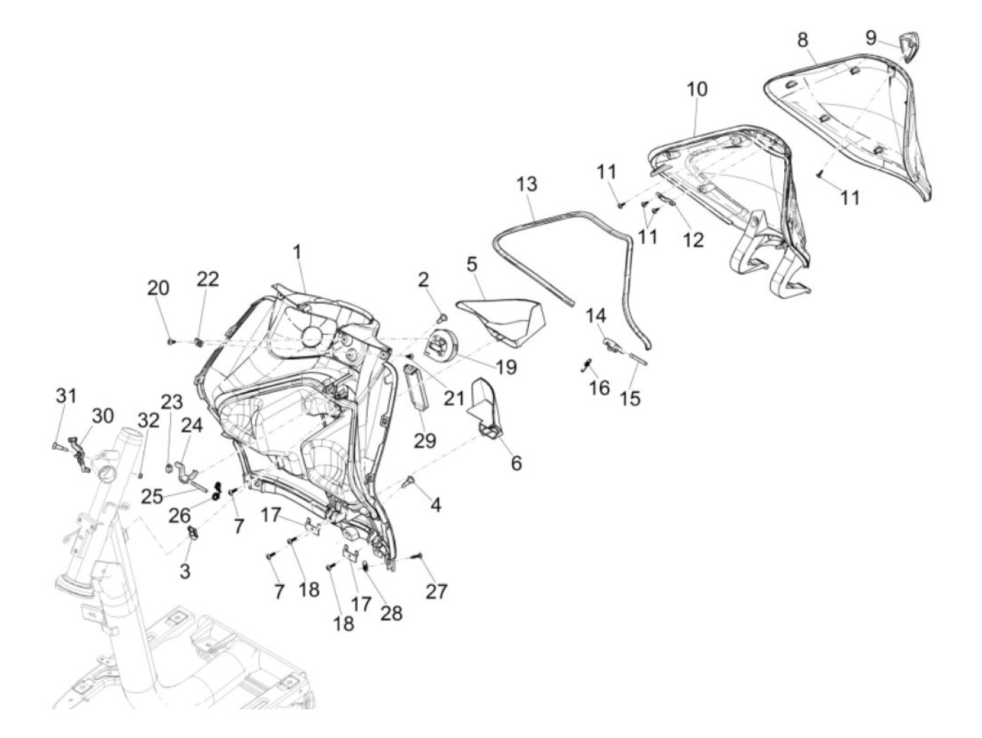 Supporto per coperchio vano bagagli -PIAGGIO- Vespa GT 250 (ZAPM45102), Vespa GT L 125 (ZAPM31100, ZAPM31101), Vespa GT L 200 (ZAPM31200), Vespa GTS 125 (ZAPM31300, ZAPMA3100, ZAPMA3200, ZAPMA3700), Vespa GTS 150 (ZAPMA3200, ZAPMA3100), Vespa GTS 250 (ZAP