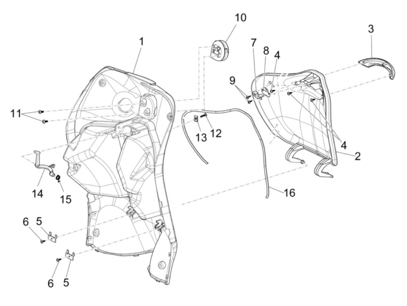 Supporto per coperchio vano bagagli -PIAGGIO- Vespa GT 250 (ZAPM45102), Vespa GT L 125 (ZAPM31100, ZAPM31101), Vespa GT L 200 (ZAPM31200), Vespa GTS 125 (ZAPM31300, ZAPMA3100, ZAPMA3200, ZAPMA3700), Vespa GTS 150 (ZAPMA3200, ZAPMA3100), Vespa GTS 250 (ZAP