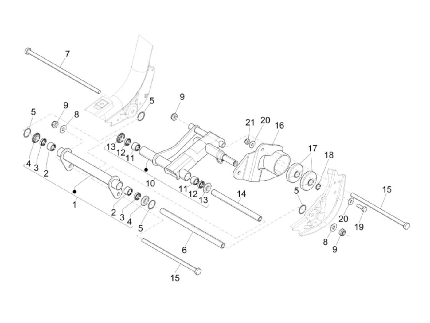 Perno forcellone per forcellone motore (l=183mm Ø=10.5 x 15 mm -PIAGGIO- Vespa Primavera 125 (ZAPM81100, ZAPM81101, ZAPMA1100, RP8M82500, RP8M82821, RP8M82100, RP8M82310, ZAPMA1101, ZAPMD1100), Vespa Primavera 150 (ZAPM81200, ZAPMA1200, ZAPM81201, ZAPMA12
