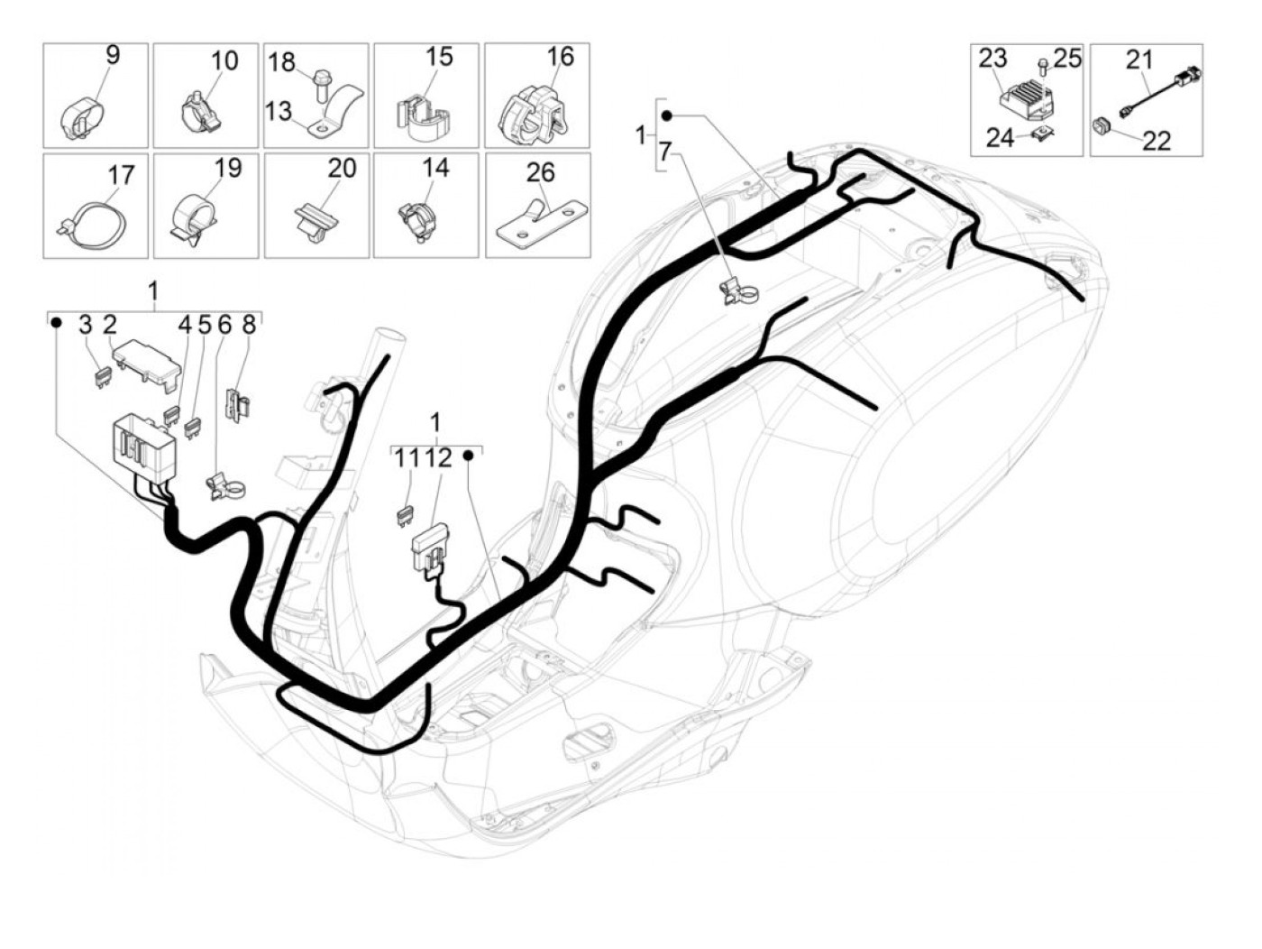 Piastra di fissaggio per cablaggio -PIAGGIO- Vespa Primavera 50 (ZAPC53200, ZAPC53300, ZAPC53302, ZAPCA0100, ZAPCA0102, ZAPCA0200, ZAPCA0202), Vespa Sprint 50 (ZAPC53201, ZAPC53301, ZAPC53303, ZAPCA0101, ZAPCA0103, ZAPCA0201, ZAPCA0203, ZAPCA06B, ZAPCAV6B