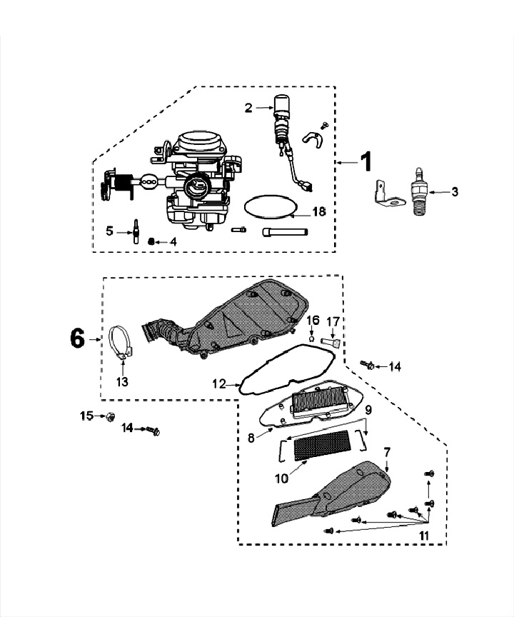 Carburatore -QUALITÀ OEM PO 18mm- GY6 (4 tempi) 50cc (139QMB)