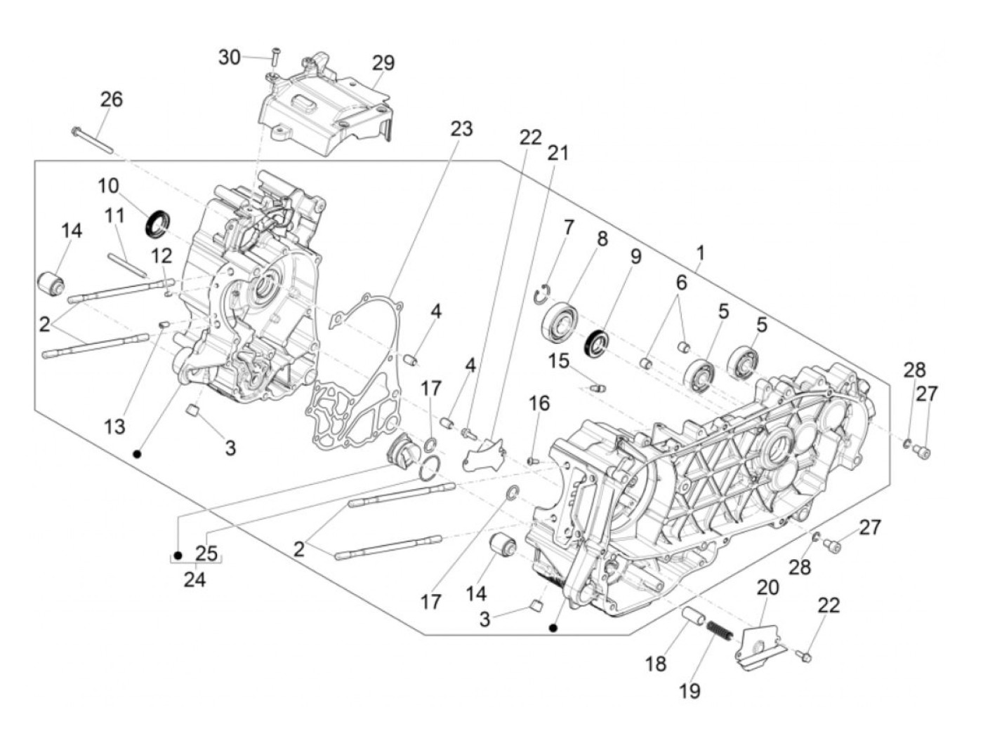 Carter motore -PIAGGIO, categoria 1- Vespa GTS 125 (ZAPMD3200), Vespa GTS Super 125 (ZAPMA3700, ZAPMD3200), Piaggio Medley 125 (RP8MA0120, RP8MA0121, RP8MB0100, RP8MA0131, RP8MD0100), Piaggio Medley 150 (RP8MB0200, RP8MA0210, RP8MA0220, RP8MA0231, RP8MA02