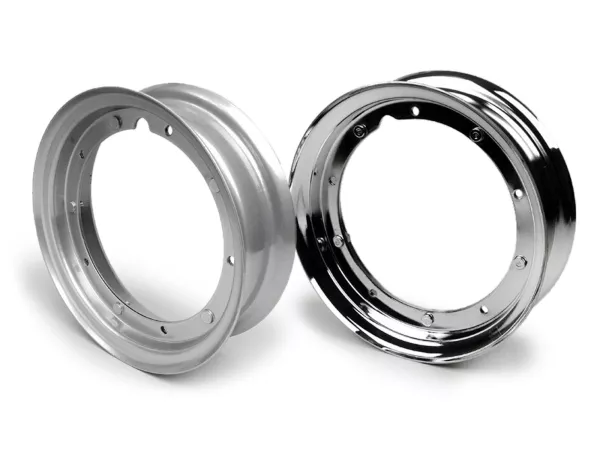 Il cerchio per la Vespa Cosa (2,50-10) ha 0,4 pollici di larghezza in più rispetto ai cerchi Vespa Largeframe e Smallframe con la solita dimensione 2,10-10 che conosciamo. Questo significa che il cerchio può essere utilizzato come cerchio di conversione moderata. Si può quindi utilizzare anche un pneumatico a basso profilo con dimensioni 100/90-10. A seconda del produttore del pneumatico, tuttavia, è necessario prestare attenzione al gioco del pneumatico sulla forcella e sul coperchio della frizione. Esistono notevoli differenze di larghezza da un produttore all'altro, nonostante le stesse specifiche dimensionali.