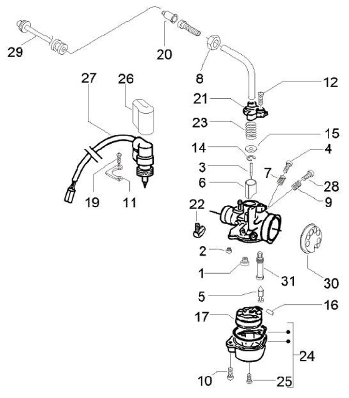 Elettrococlea -PIAGGIO, DELLORTO- carburatore Ø fino a 22mm - tappo rettangolare
