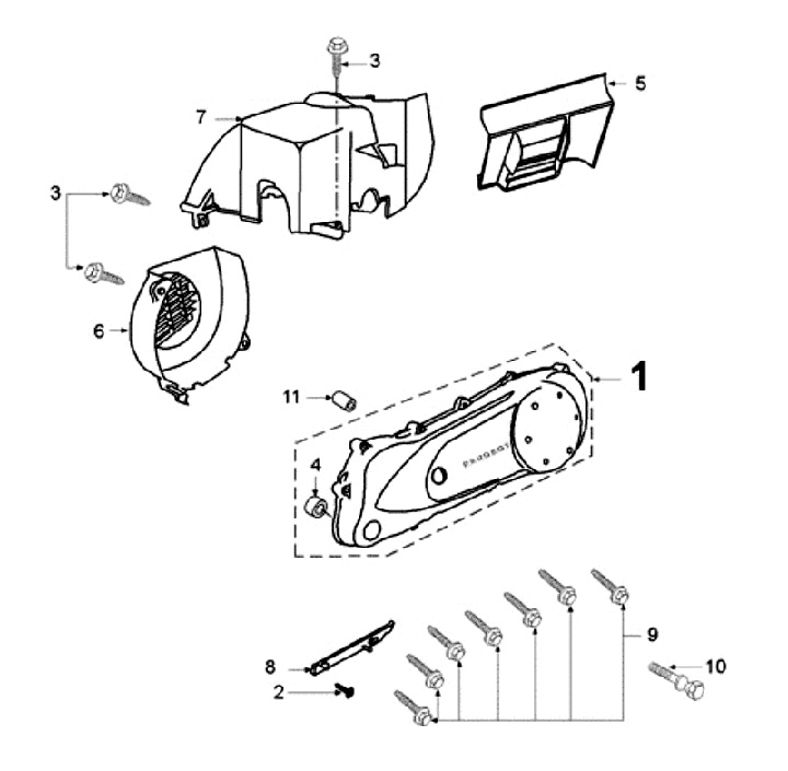Copriventola -PEUGEOT- Peugeot 50 cc AC verticale - SPEEDFIGHT1 50 cc AC, SPEEDFIGHT2 50 cc AC, TKR50, TREKKER50, VIVACITY50, ELYSEO50, SQUAB50, SV50, ZENITH50, BUXY50, ELYSTAR50, LOOXOR50, SPEEDAKE